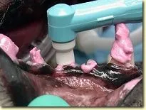- Start with the canine teeth (fangs) and gradually work around the entire mouth. Be sure to include the gums as well as the teeth..